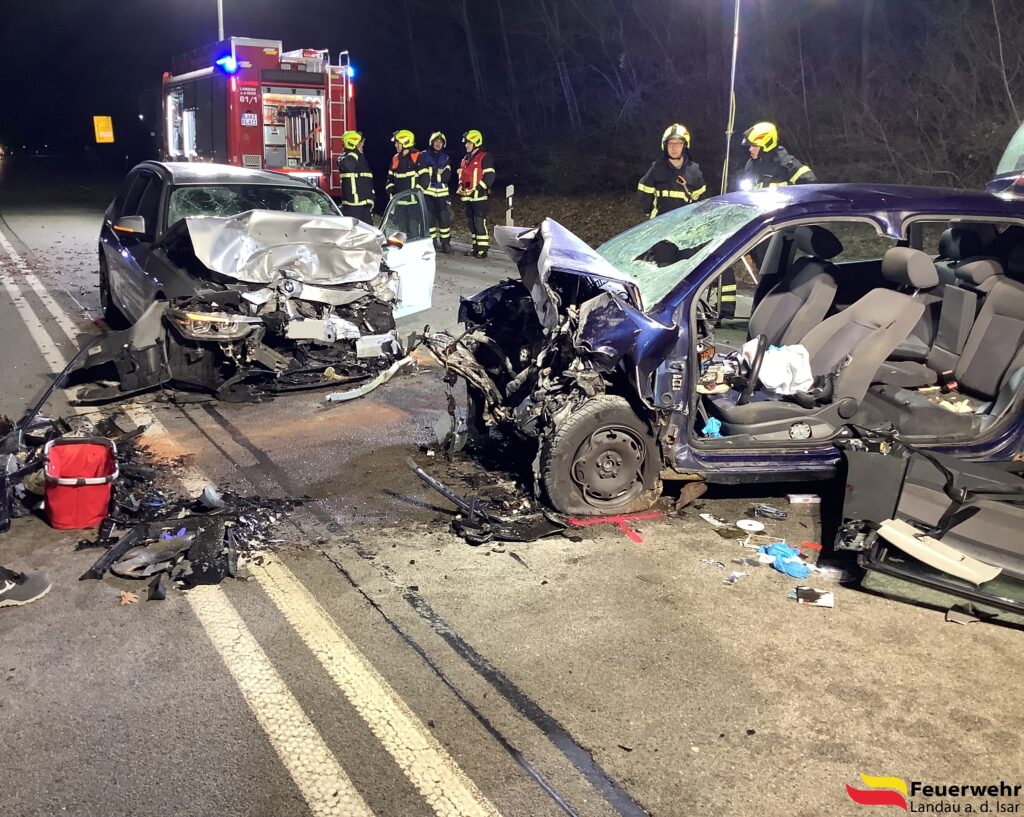 Frontalzusammenstoß zweier PKW im Bereich B 20 „Landauer Berg“; Befreiung einer eingeklemmten Person mittels hydraulischem Rettungssatz; Brandschutz sichergestellt; Unterstützung Rettungsdienst; Nachalarmierung für die Feuerwehren Thalham und Oberframmering; Aufbau große Umleitung B20, Unterstützung Polizei; Unterstützung Abschleppdienst; Binden ausgelaufener Betriebsstoffe und Reinigung der Fahrbahn; Unterstützung Gutachter